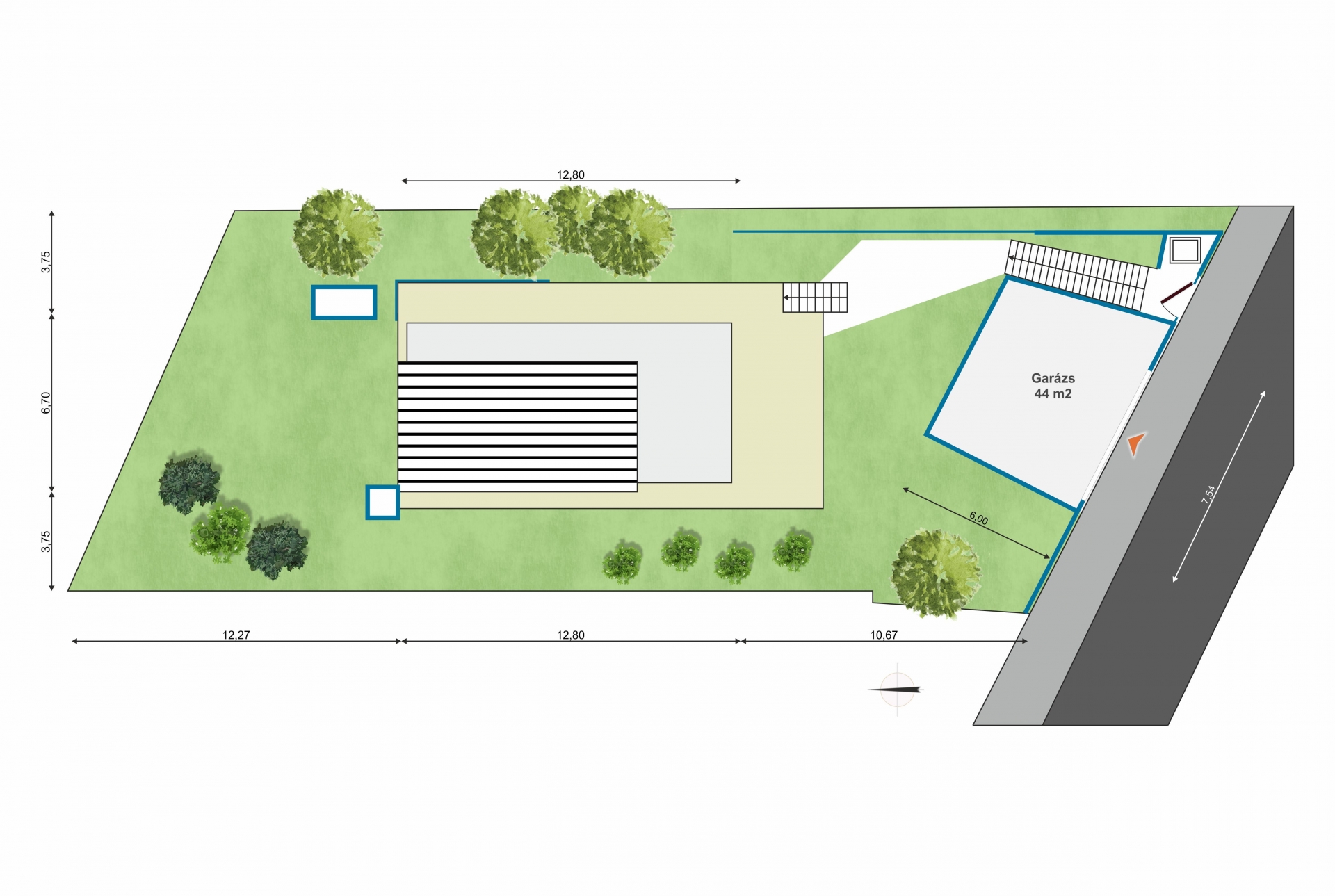 Garázs: 44 m2