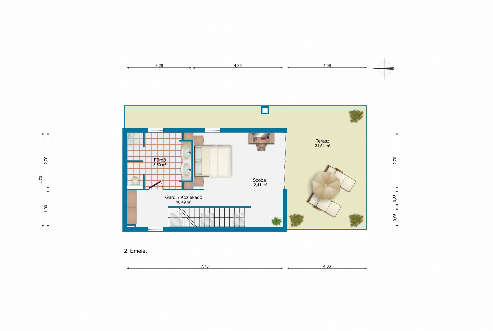 Terasz: 31,54 m2