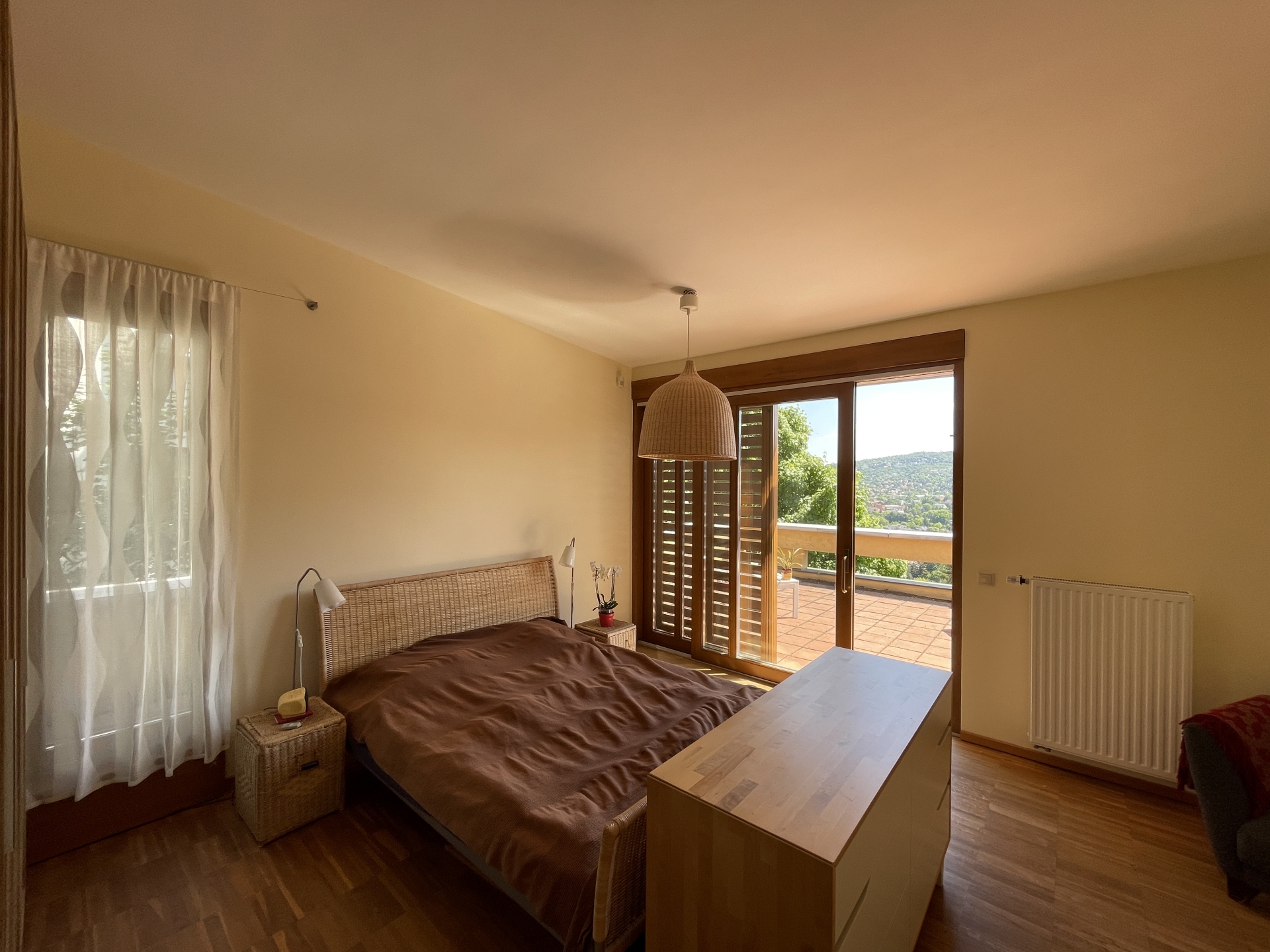 A második emelt egy különálló apartman a szülők részére, melyben szintén megtalálható a tágas fürdő dupla mosdóval és WC-vel, egy dolgozó sarok és a tágas szoba melyhez kapcsolódik a felső szinten található nagyméretű napozó terasz is.