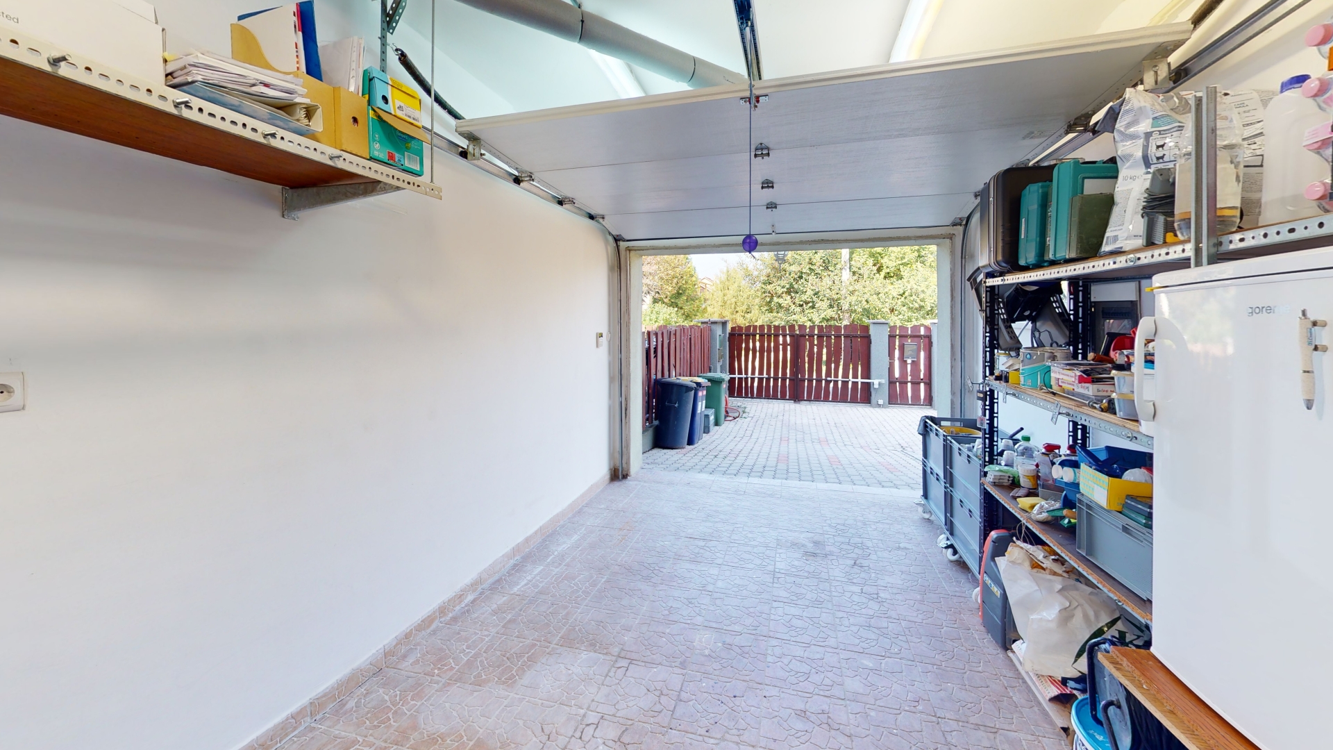 A fűtött garázsban egy autó számára biztosított a parkolás, míg a viacolorral burkolt kocsibeállón további egy autó parkolhat. A parkolást automata kertkapu és elektromos garázskapu teszi könnyebbé.
