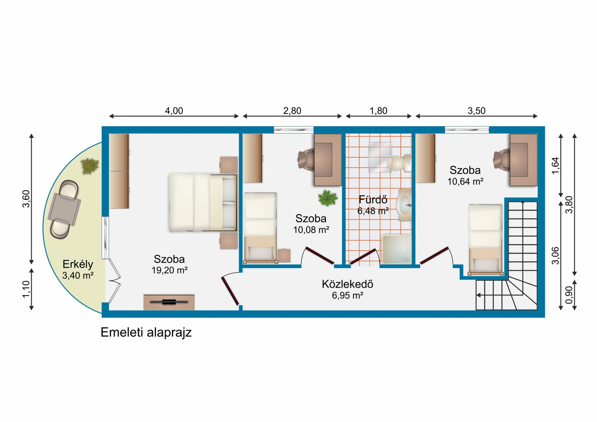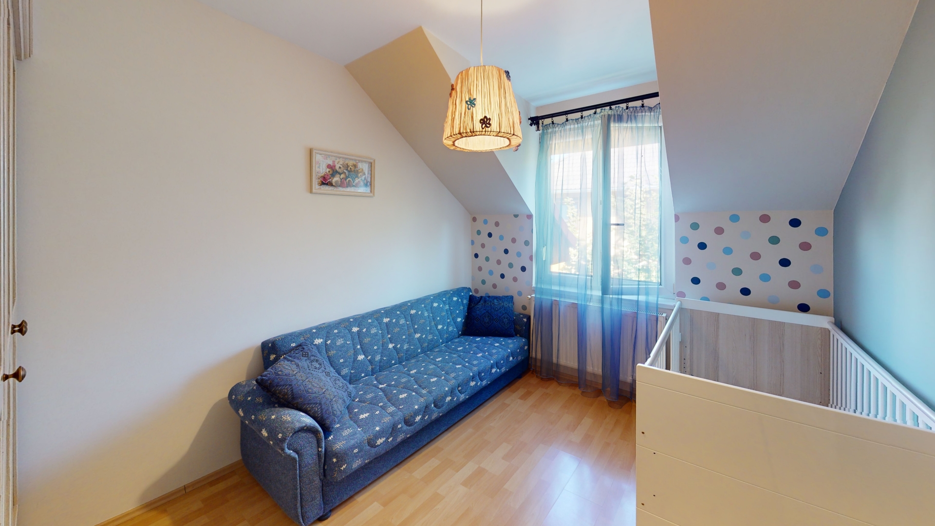 Komfortnövelőként a földszinten elektromos padlófűtés is van a fürdőszobában és nappaliban, ráadásul a nappali terasz felőli része, külön szabályozható.