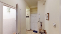 A társasházba belépve 8 kényelmes lépcső vezet a lift-ig, a lépcsőház zárt, a lakáshoz a tágas liften érkezünk, a lépcsőház tiszta, rendezett és világos. A lakásba lépve a közlekedőbe érkezünk melyből a nagyszobát kivéve minden helyiség külön megközelíthető. A bejárattól jobbra található az ablakos konyha, közvetlen mellette a kamrával. A bejárattól egyenesen tovább haladva balról a fürdőt, jobbról a WC-t majd az egyik szobát találjuk, szemben az étkezőbe érkezünk, melyből mindkét szoba elérhető.